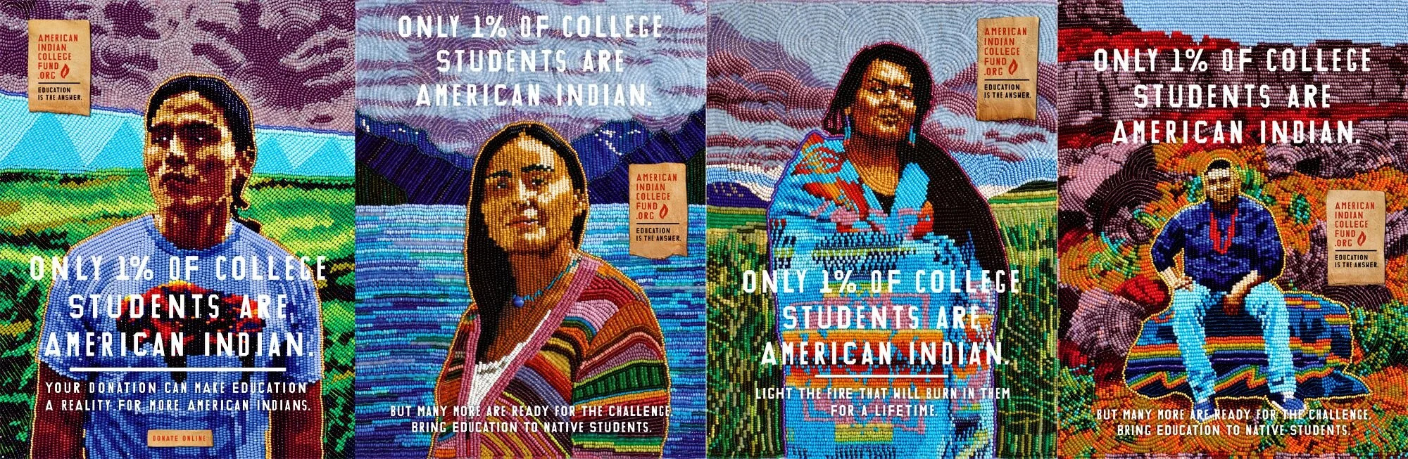 We grabbed people's attention by pairing the staggering statistic with a powerful visual treatment inspired by Native beadwork, and music provided by rock artist Neil Young. All messages ended with a call to donate via a new website, along with a new tagline for the organization: “Education is the answer."